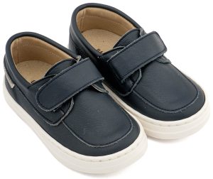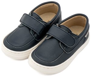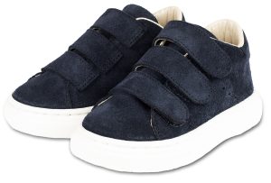 Παπουτσάκι περπατήματος σε μπλε λείο δέρμα, ταμπά καστόρ δέρμα και κλείσιμο με ελαστικό κορδόνι και Velcro