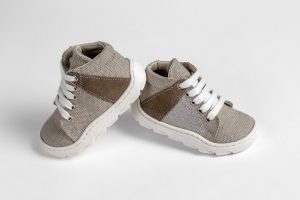 Μποτάκι περπατήματος σε μπεζ ύφασμα και καφέ καστόρ δέρμα