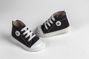 Μποτάκι περπατήματος σε μαύρο καμβά και λευκό δέρμα