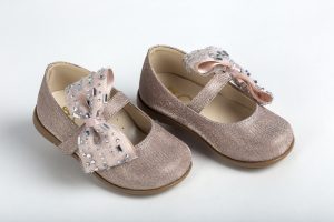 Μπαλαρίνα περπατήματος σε ροζ γκλίτερ διακοσμημένη με ροζ φιόγκο
