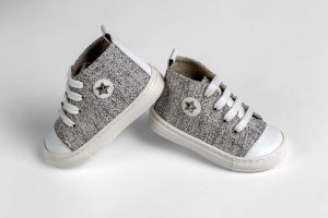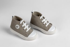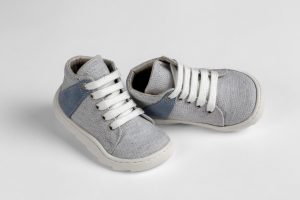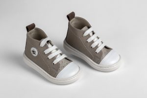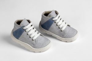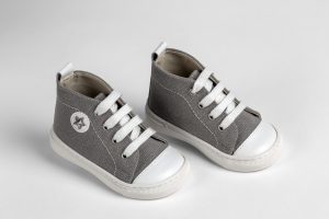 Μποτάκι περπατήματος σε γκρι καμβά και λευκό δέρμα