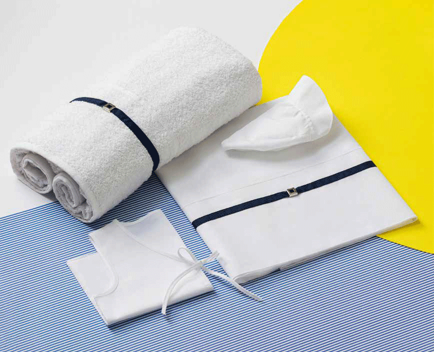 Βαμβακερό σετ λαδόπανων σε λευκό χρώμα, με κομψές τρέσες σε αποχρώσεις λευκού & navy blue.Το ασημένιο διακοσμητικό τετράγωνο πάνω στην τρέσα απογειώνει το σχέδιο, χαρίζοντας μια αίσθηση διακριτικής πολυτέλειας. Ιδανική επιλογή για μια κομψή και μοντέρνα βάπτιση. Πετσέτα 70*140*400gr2. Πετσέτα παπά 30*50*400gr2. Όλες οι πετσέτες της Lina Baby φέρουν την ετικέτα STANDARD 100 by OEKO-TEX® (Αυτό σημαίνει ότι τα προϊόντα δεν περιέχουν επιβλαβή επίπεδα χημικών ουσιών.)