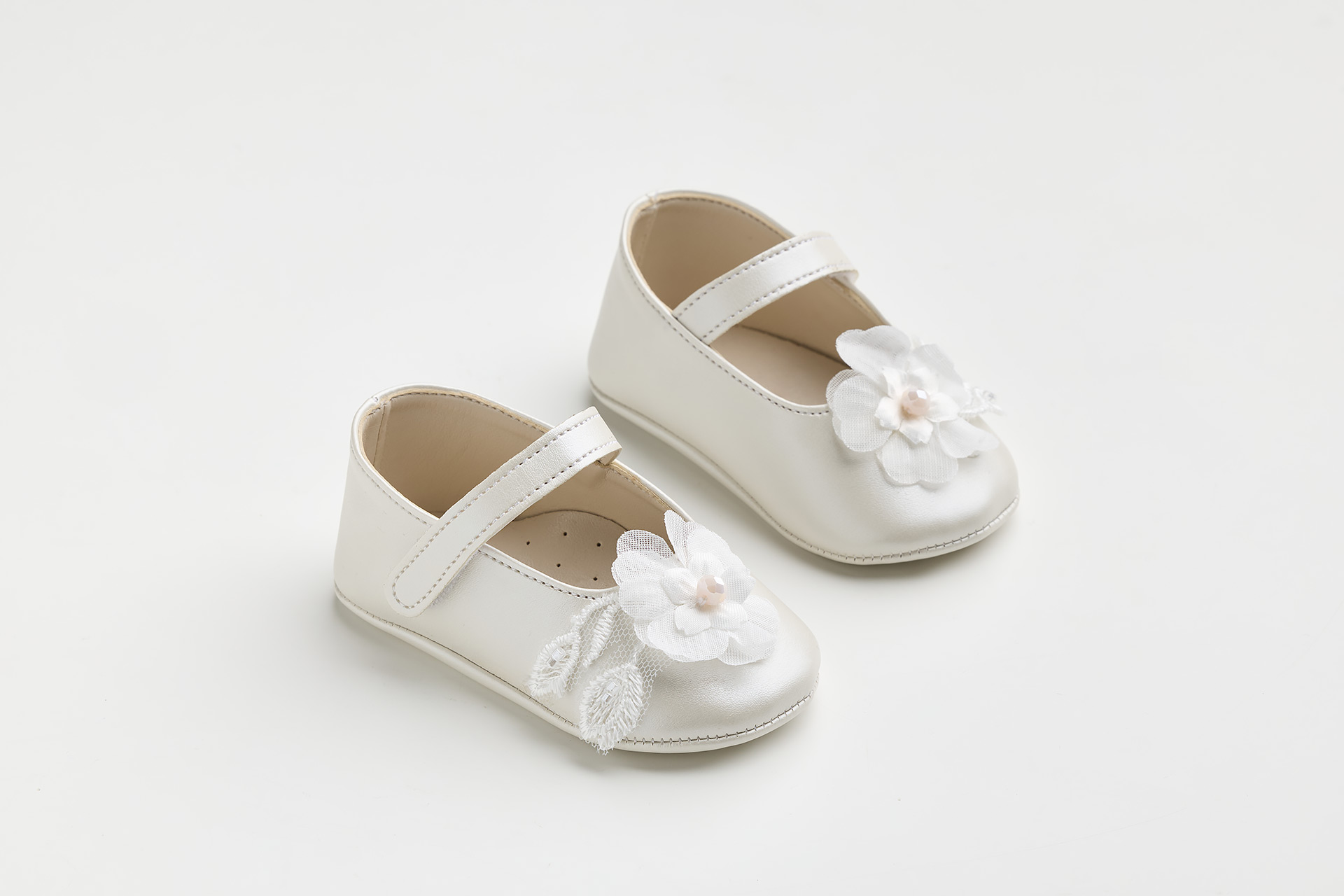 Μπαλαρίνα αγκαλιάς σε εκρού τεχνόδερμα με χειροποίητο διακοσμητικό λουλούδι.