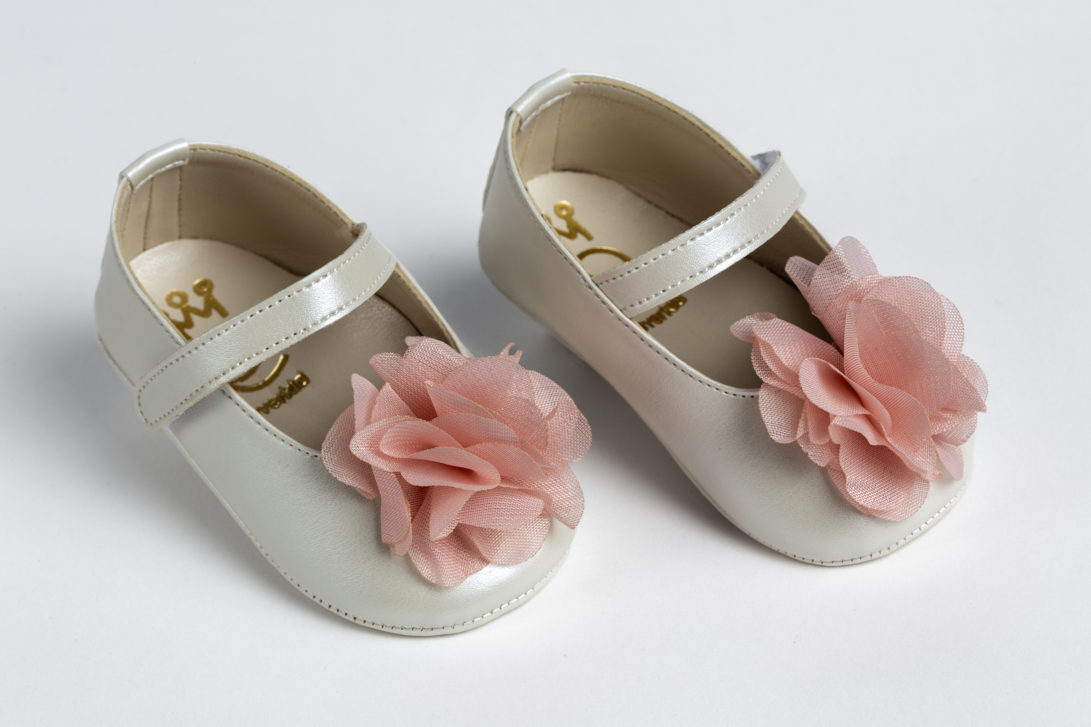 Μπαλαρίνα αγκαλιάς σε εκρού τεχνόδερμα με διακοσμητικό λουλούδι σε σάπιο μήλο. Νούμερα 16-19.