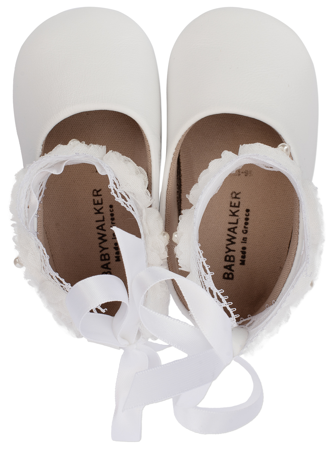 Μπαλαρινα με Δέσιμο στον Αστραγαλο απο Chiffon Λουλούδια σε Λευκό Χρώμα Νούμερα από 16 έως και 19.