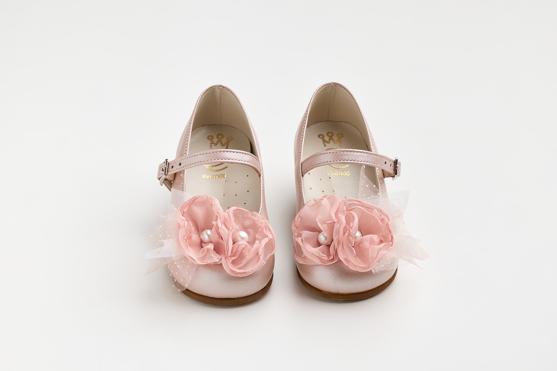 Εσπαντρίγια περπατήματος σε σομόν σατέν και εκρού δέρμα