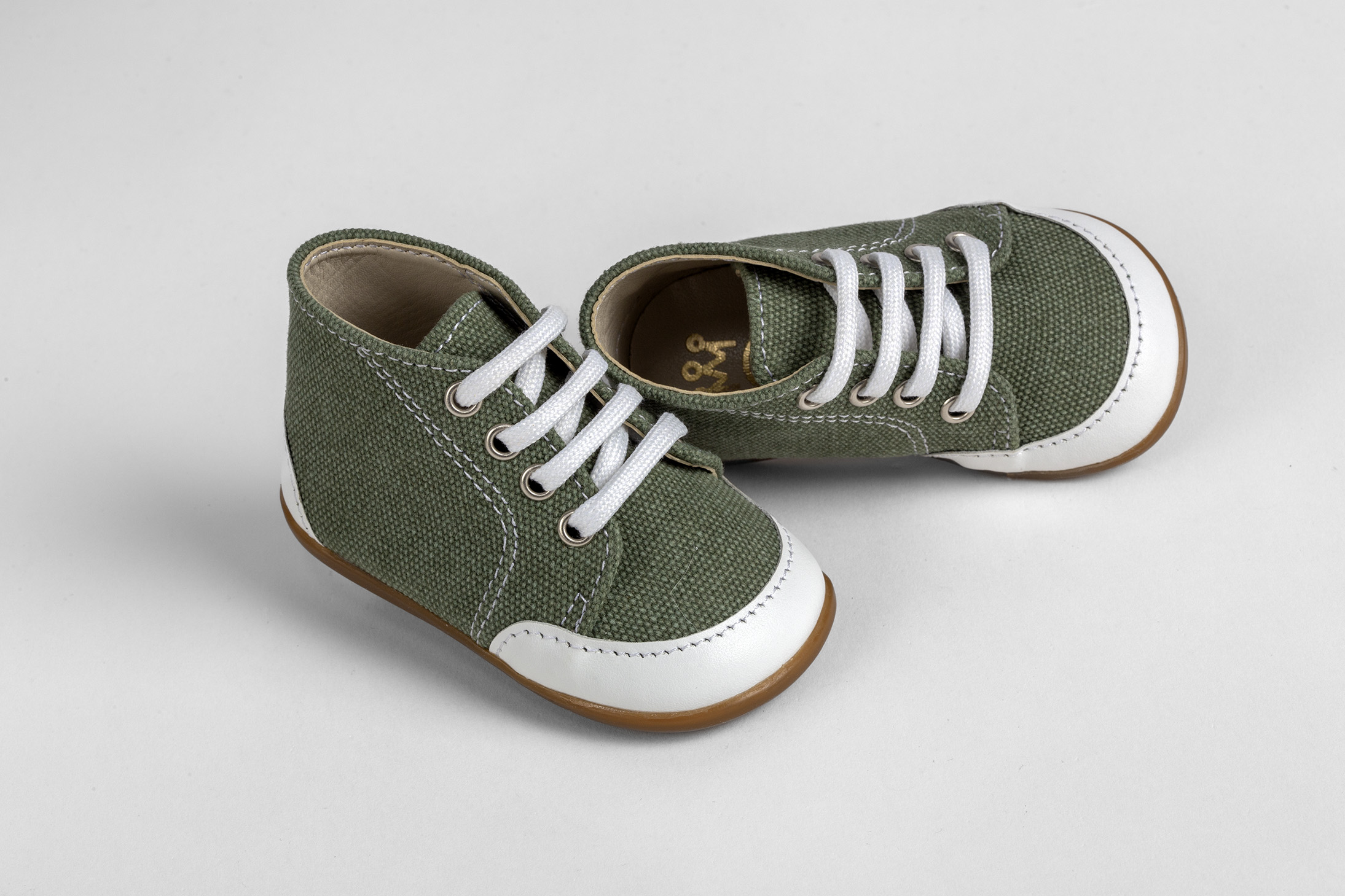Μποτάκι για τα πρώτα βήματα σε λευκό δέρμα και λαδί καμβά
