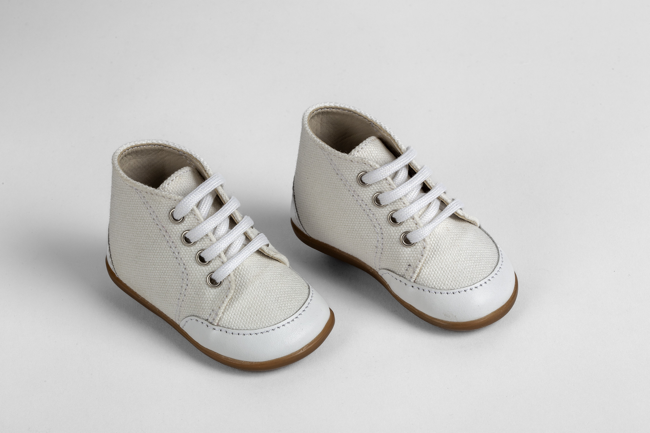 Μποτάκι για τα πρώτα βήματα σε λευκό δέρμα και λευκό καμβά