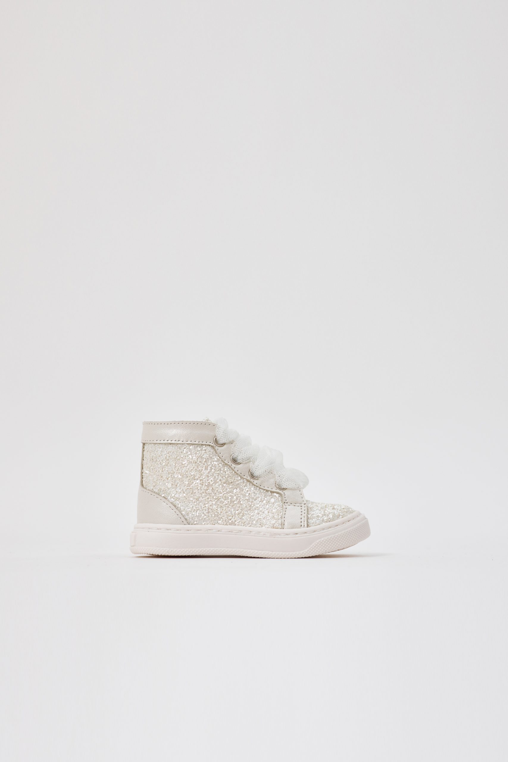Μποτάκι περπατήματος σε εκρού δέρμα και εκρού γκλίτερ.