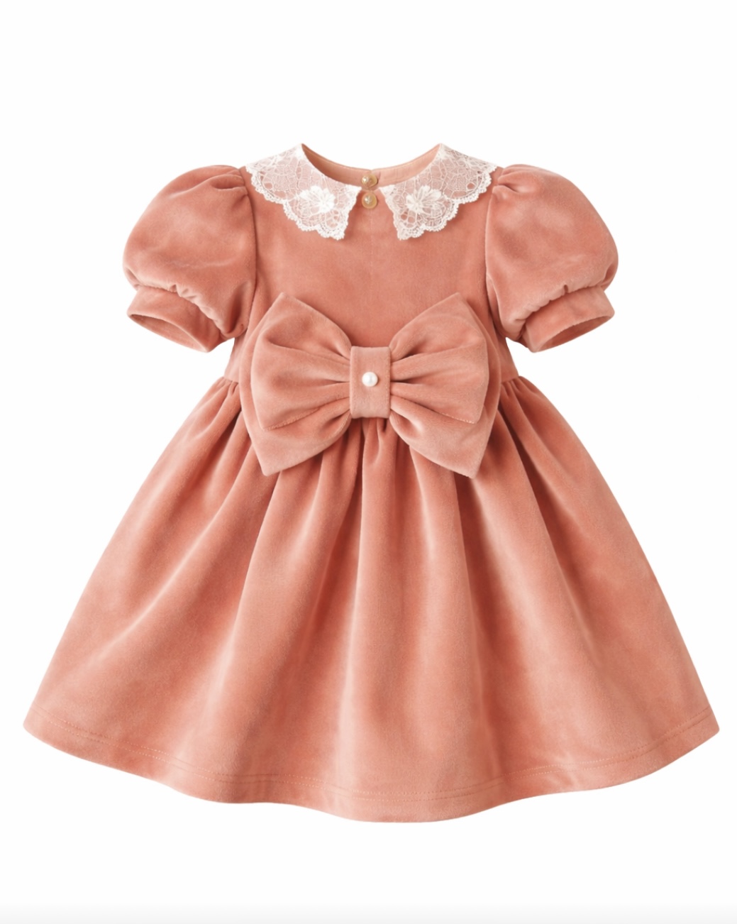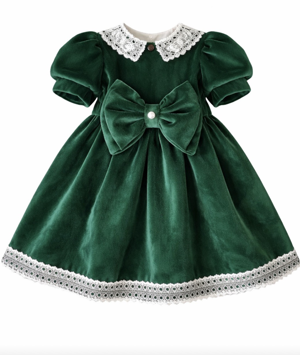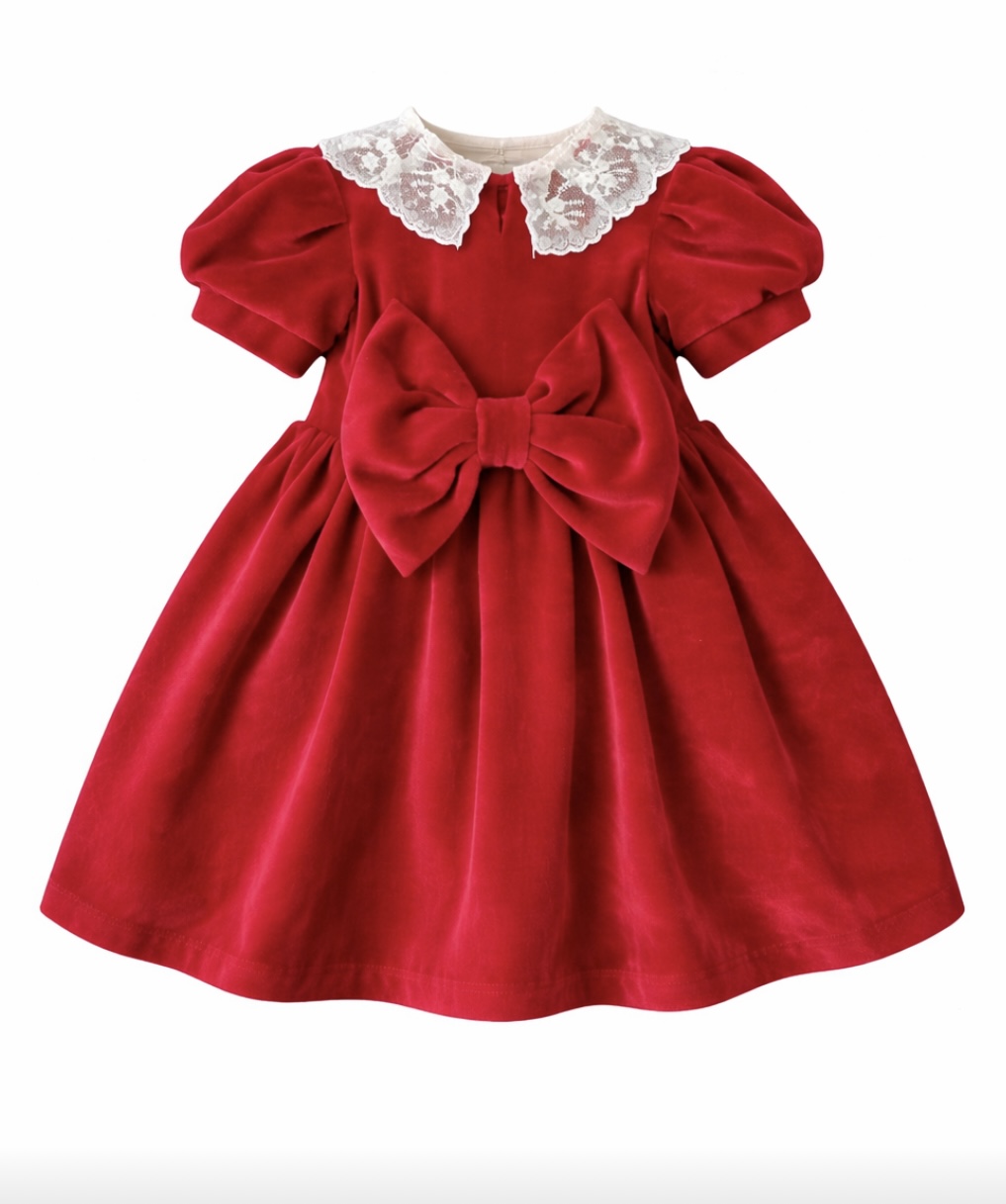 Το απαλό, πολυτελές βελούδο χαρίζει μία αίσθηση ζεστασιάς και άνεσης, ενώ οι ρομαντικές λεπτομέρειες – όπως ο εντυπωσιακός φιόγκος και ο κομψός δαντελένιος γιακάς – δημιουργούν ένα αποτέλεσμα που ξεχωρίζει. Ιδανικά για γιορτές, βαπτίσεις, φωτογραφίσεις αλλά και ιδιαίτερες στιγμές.