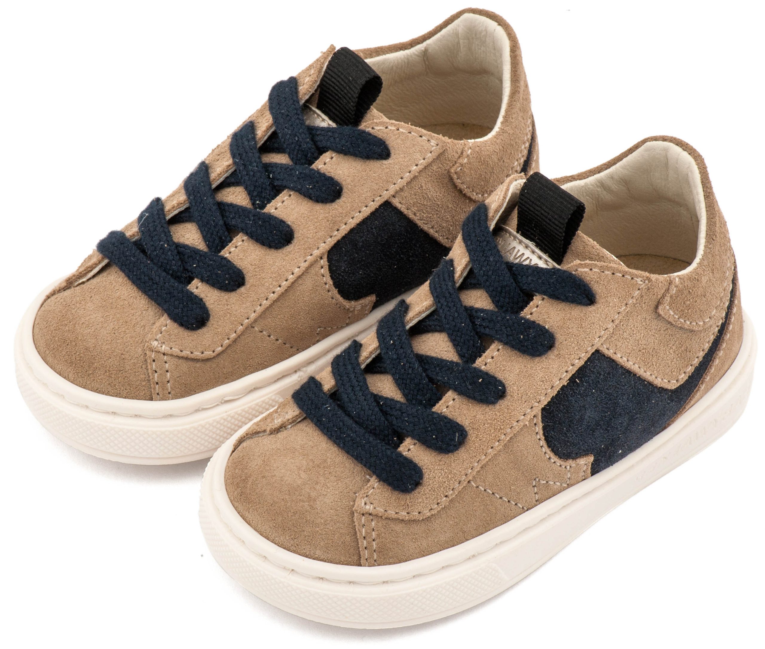 Δερμάτινο Δίχρωμο Sneaker Δετό σε Μπεζ Μπλε Χρώμα Νούμερα από 19 έως και 26.