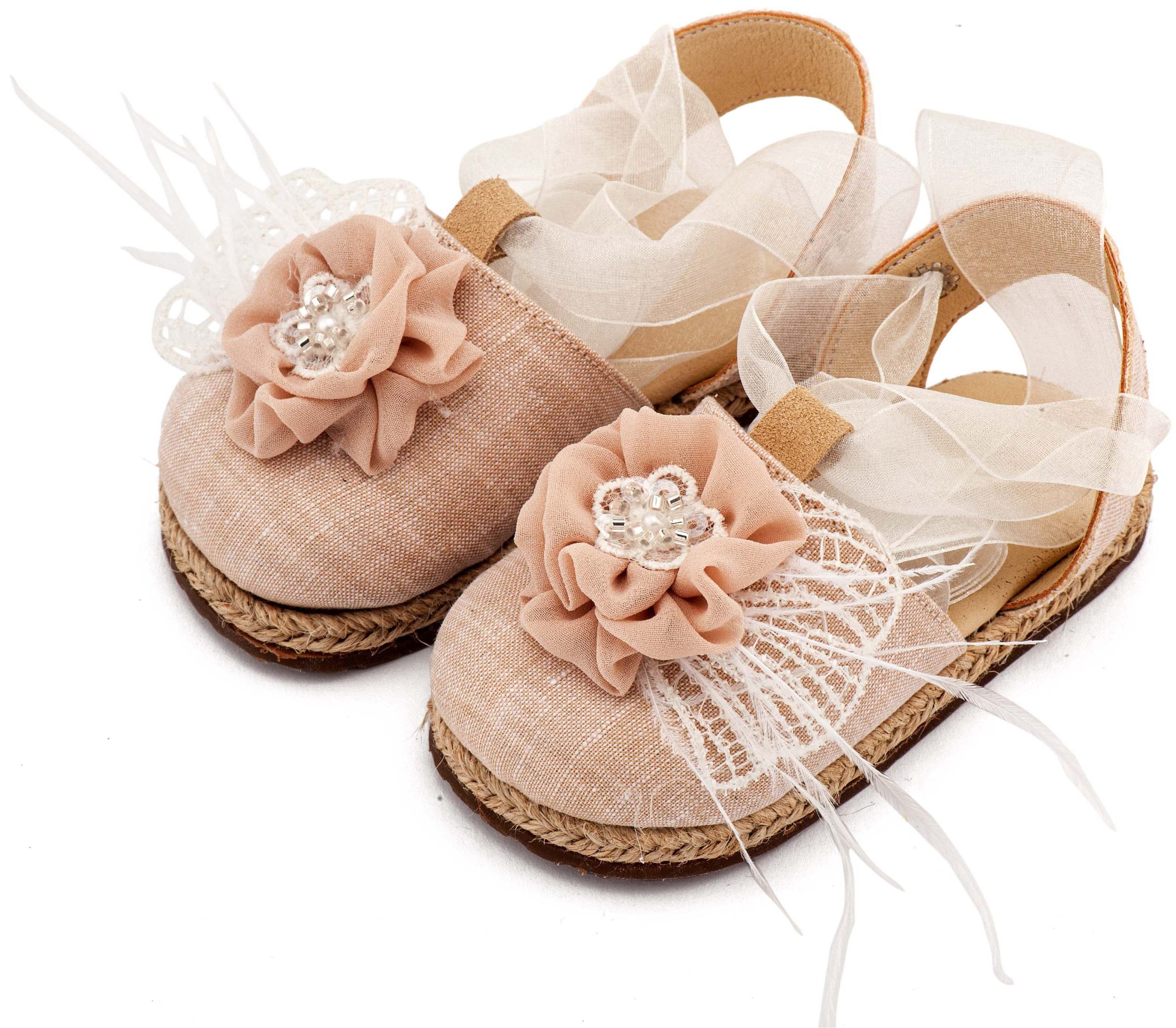 Υφασμάτινη Εσπαντρίγια με Χειροποίητο Διακοσμητικό με Πούπουλα σε Εκρού Nude Χρώμα Νούμερα από 19 έως και 26.