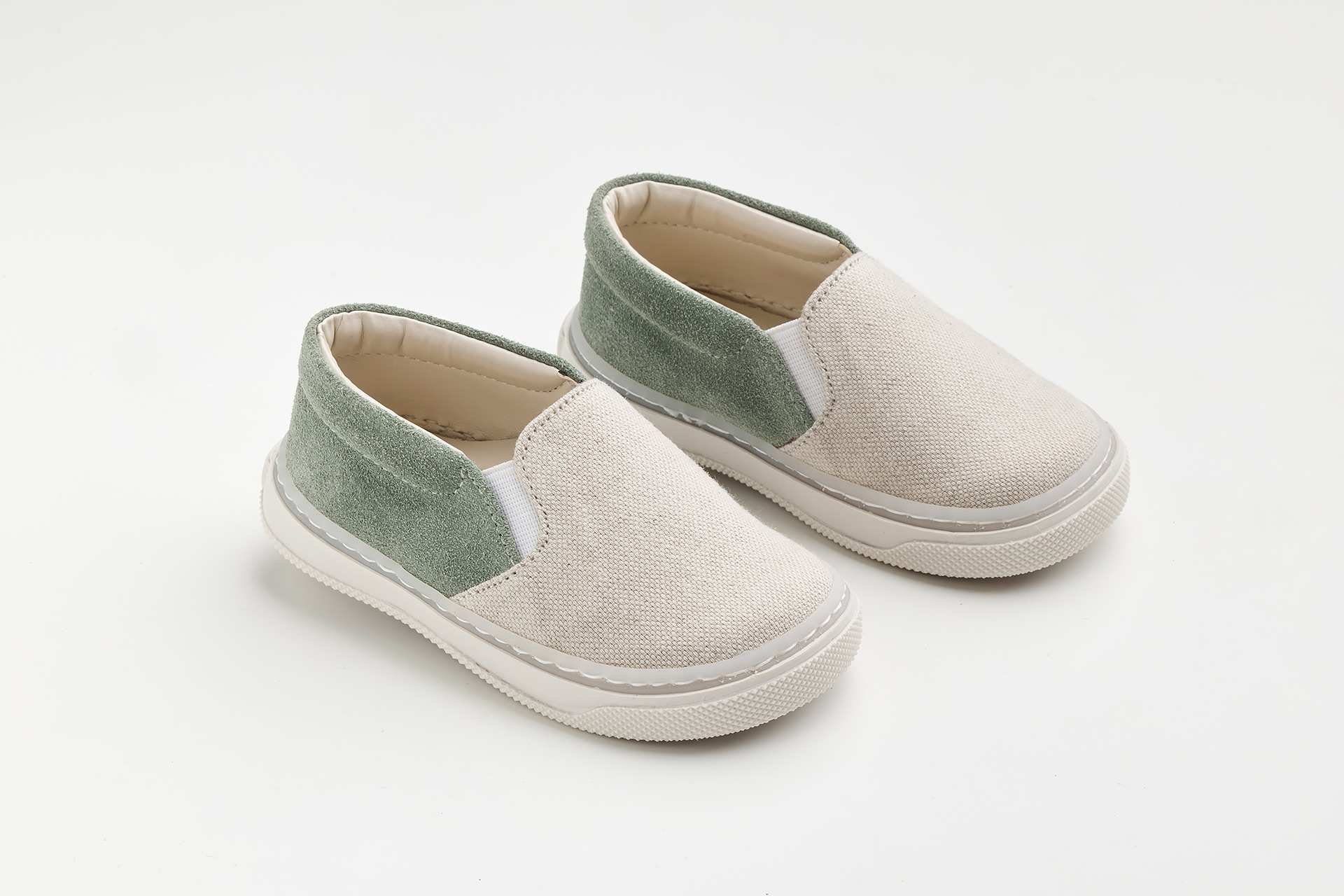 Εσπαντρίγια περπατήματος, σε μπεζ ύφασμα και μέντα καστόρ δέρμα.