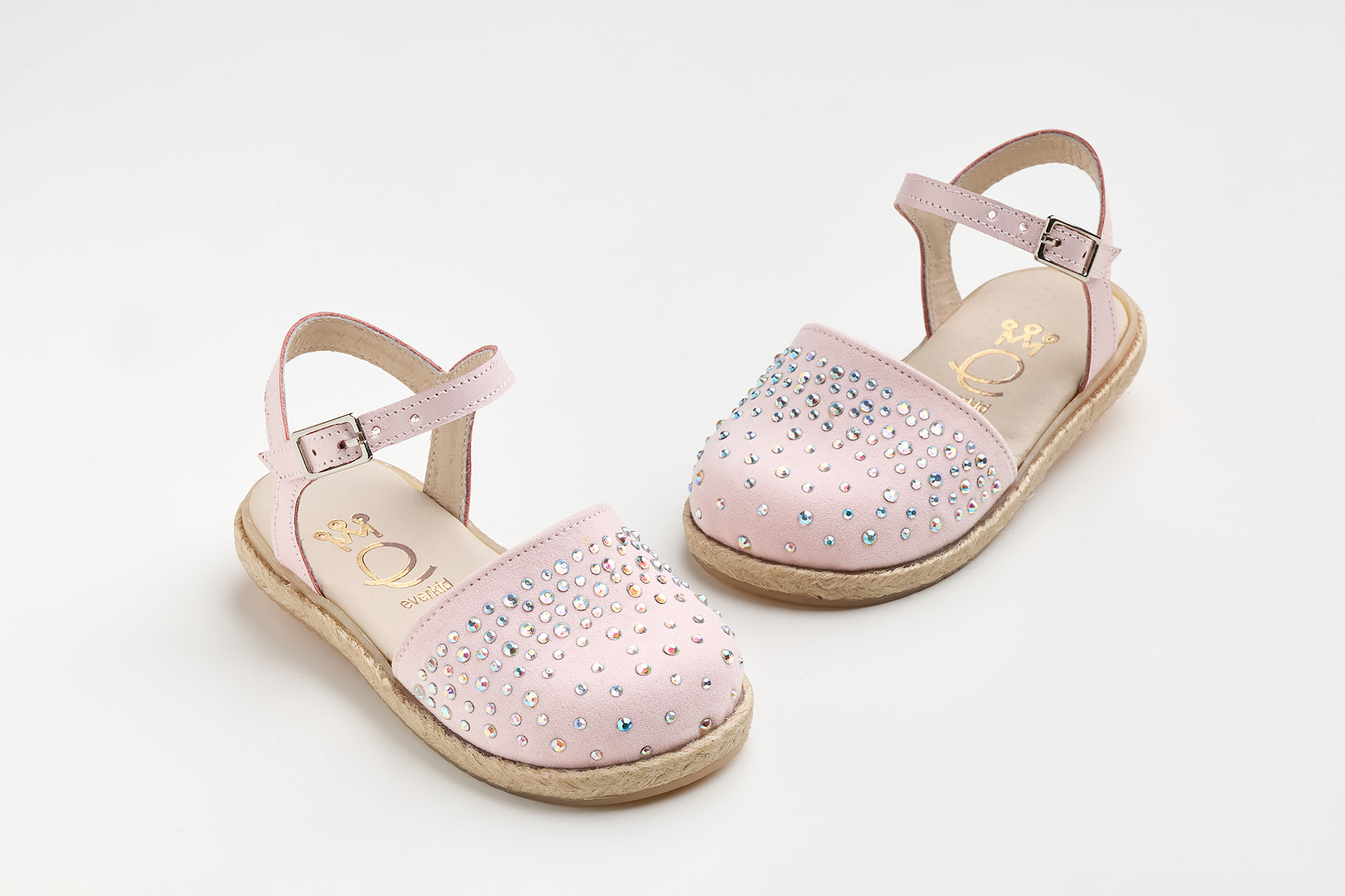 Εσπαντρίγια περπατήματος σε dusty pin K δέρμα και ροζ συνθετικό καστορ με στρας.