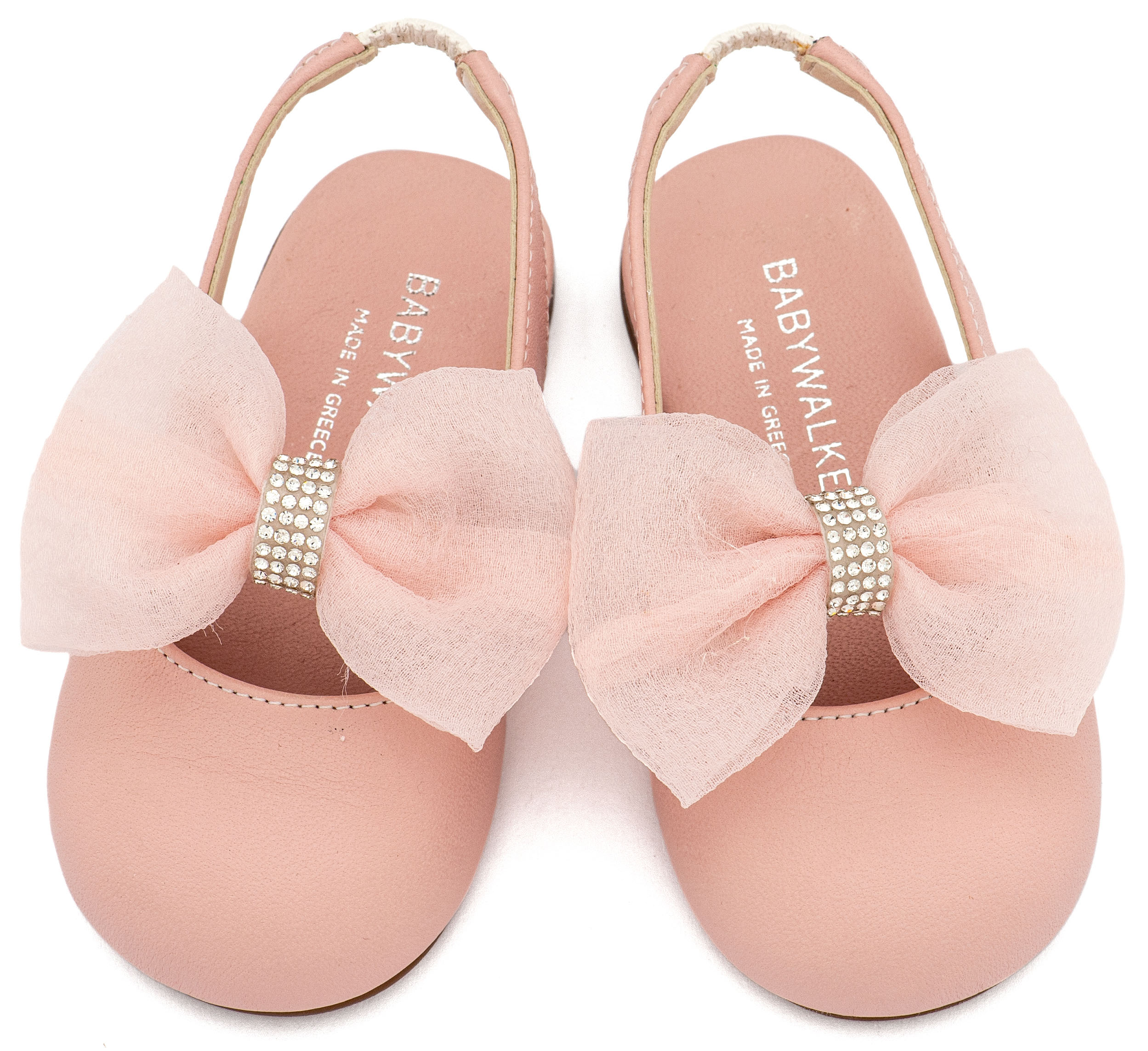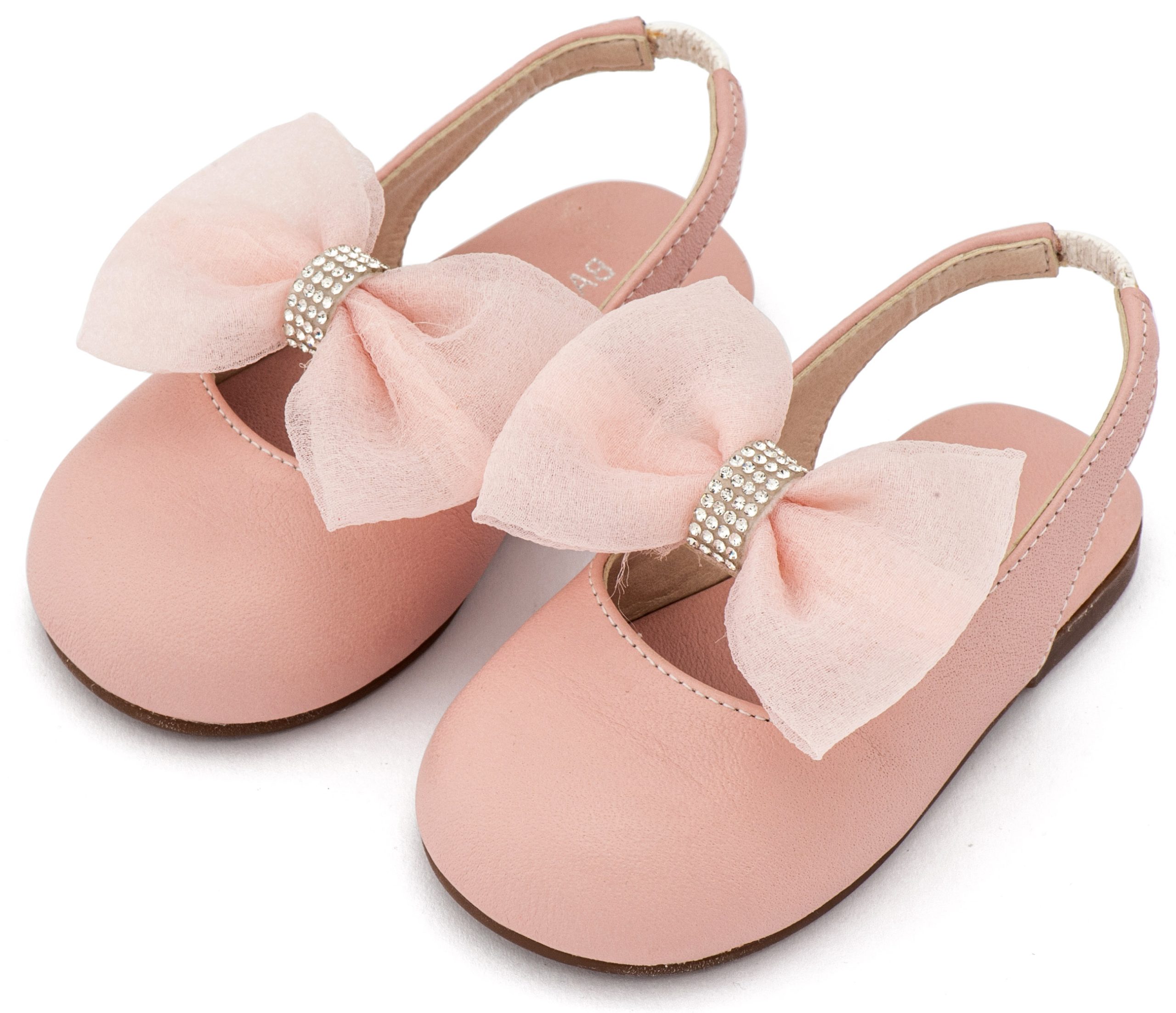 Δερμάτινο Γαλλικό Σαμπό Διακοσμημένο με Φιόγκο Οργάντζας και Στρας σε Ροζ Χρώμα Νούμερα από 19 έως και 26.