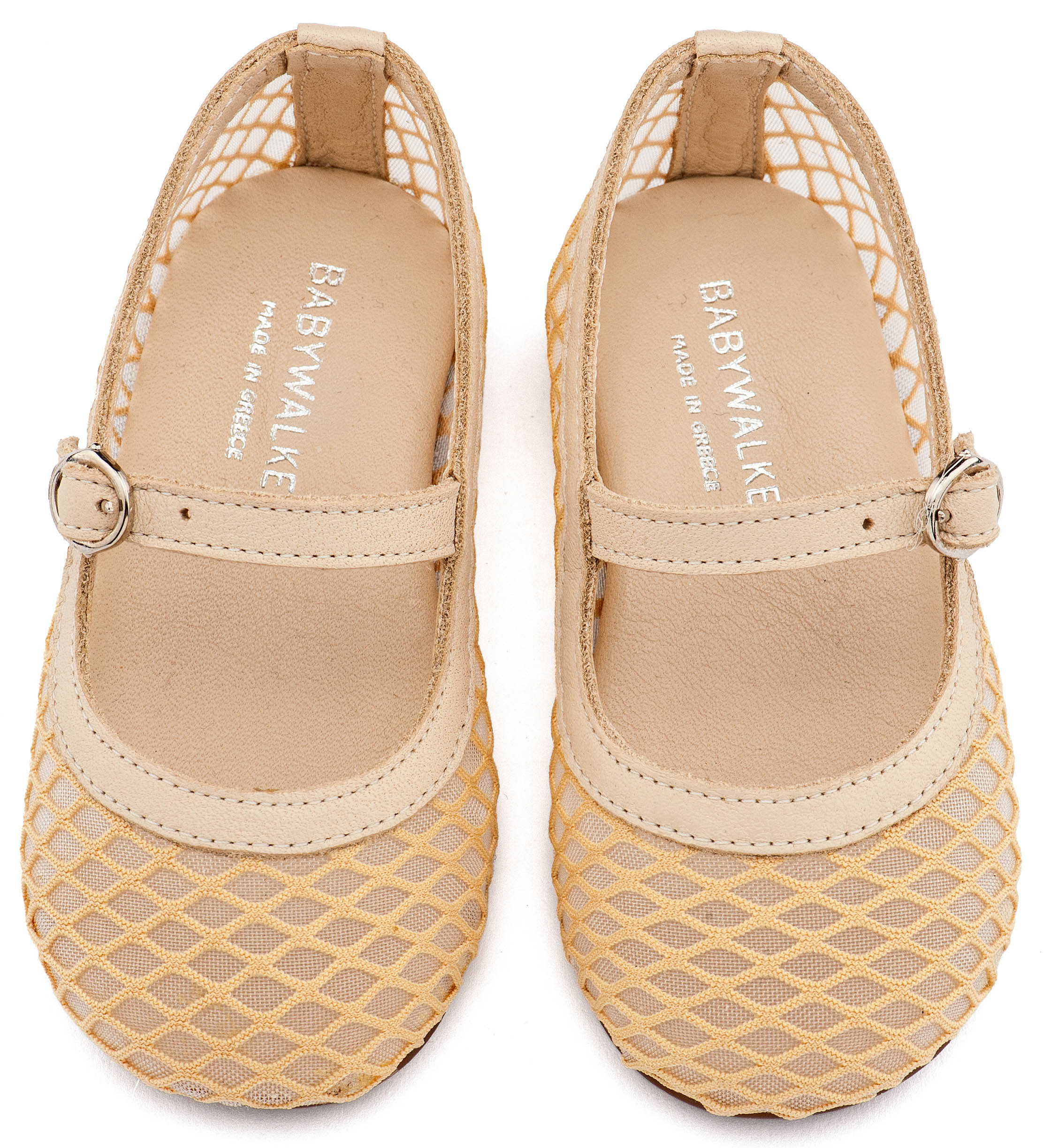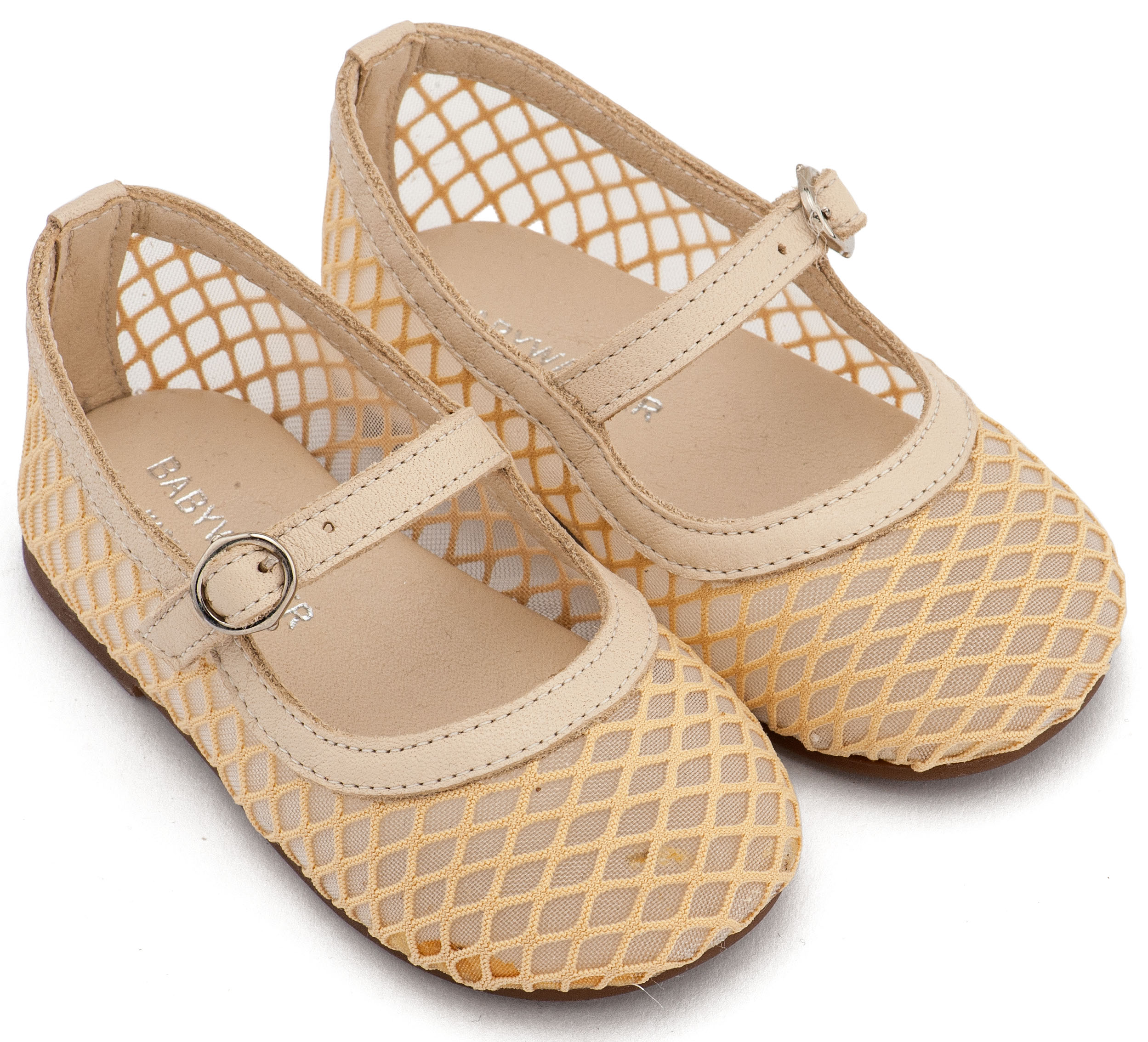 Γοβάκι Μονή Μπαρέτα Χρατς από Ύφασμα Φιλντιρέ Δίχτυ με Δερμάτινες Λεπτομέρειες σε Μπεζ Χρώμα Νούμερα από 19 έως και 26.