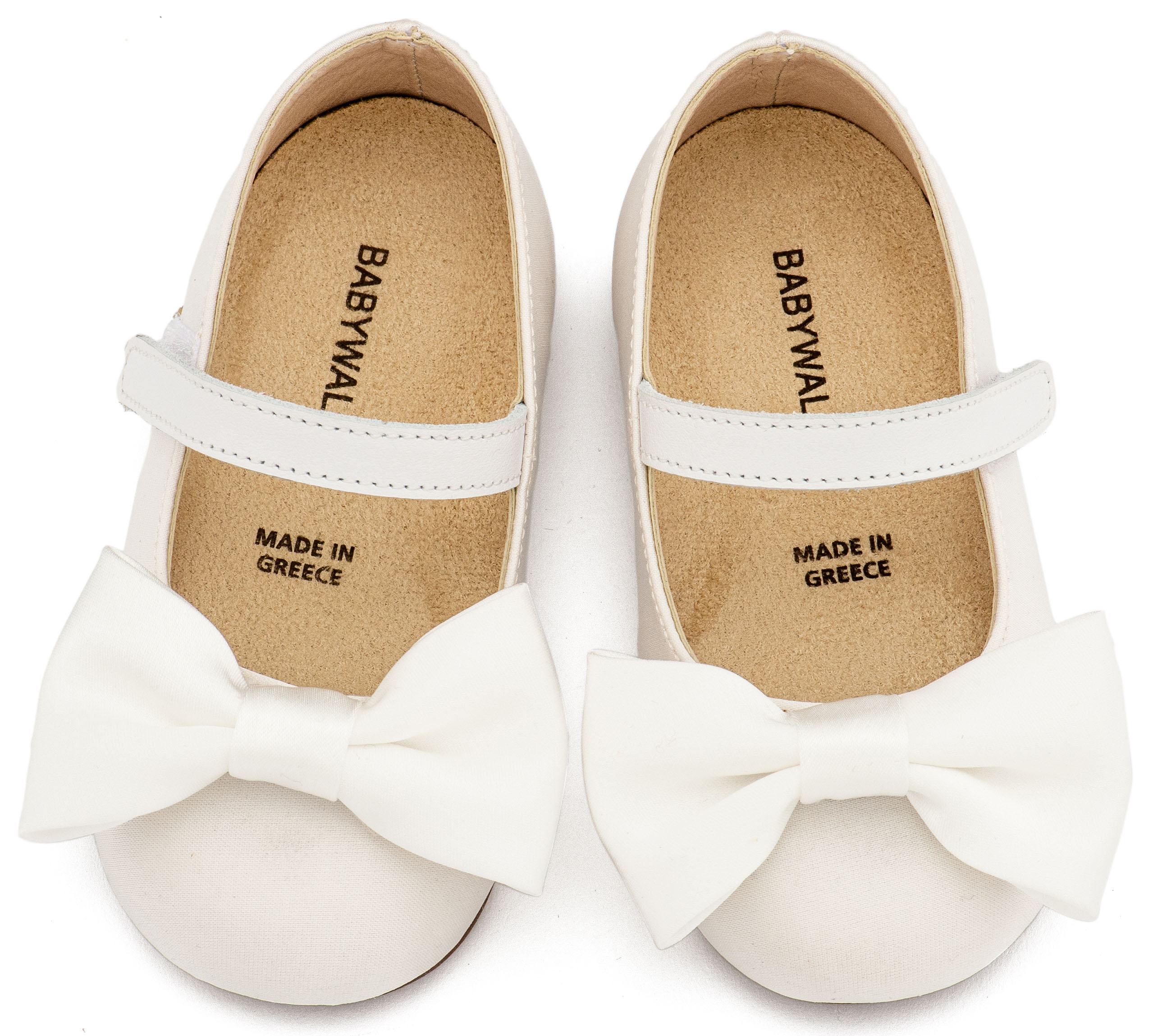 Υφασμάτινο Γοβάκι Μονή Μπαρέτα Χρατς με Σατέν Χειροποίητο Φιογκο σε Λευκό Χρώμα Νούμερα από 19 έως και 26.