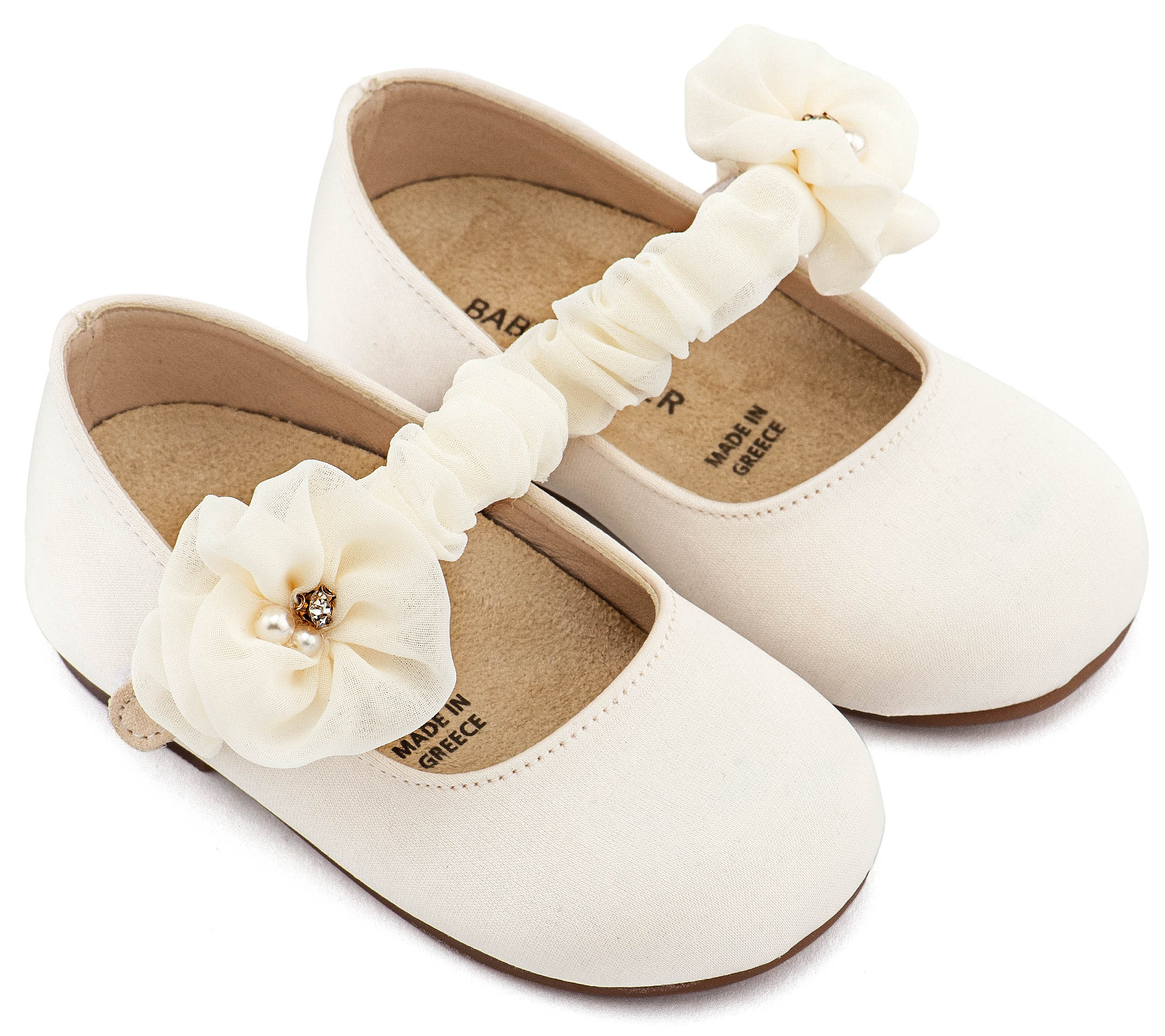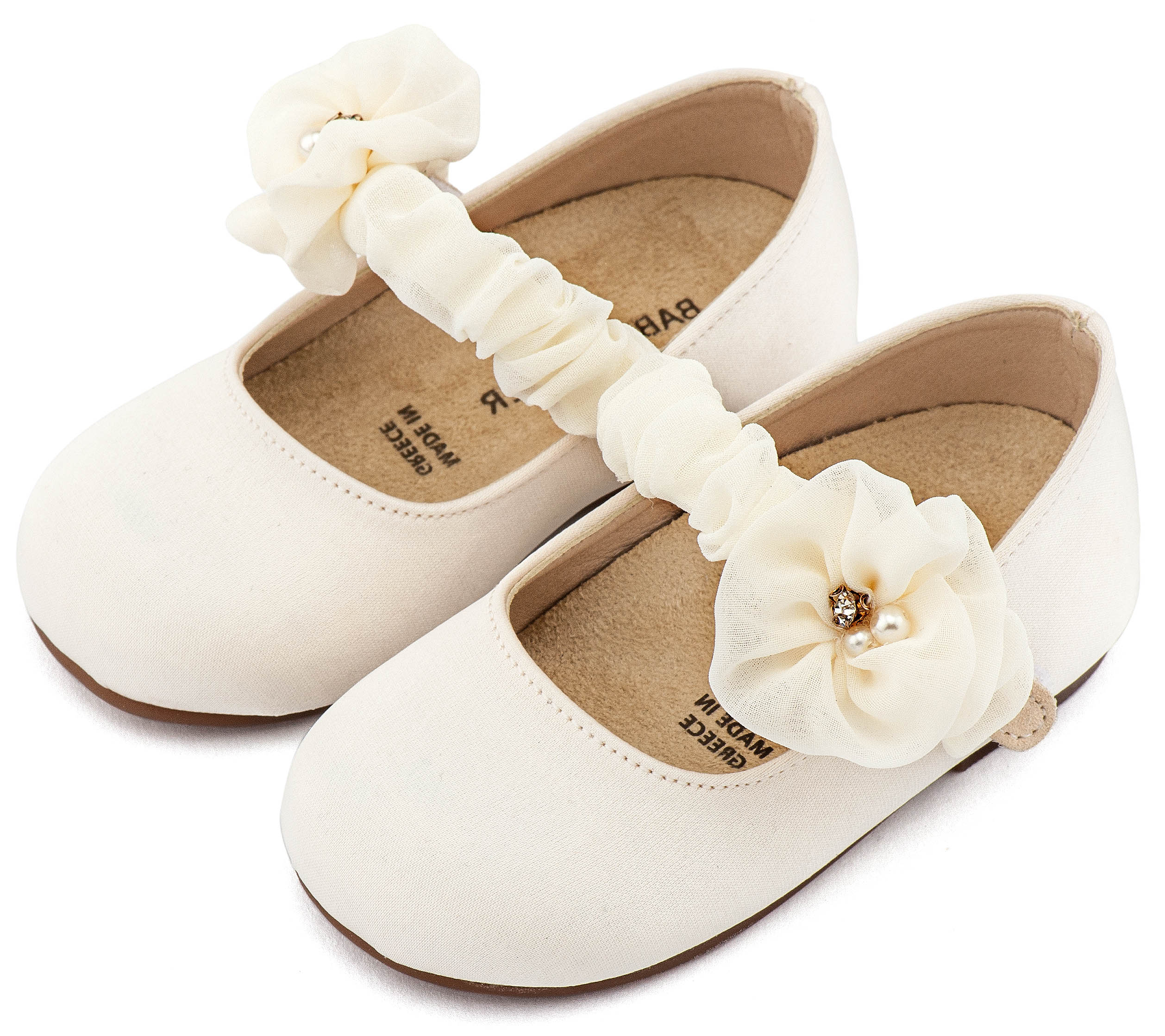 Υφασμάτινο Γοβάκι Μονή Μπαρέτα Χρατς με Υφασμάτινο Διακοσμητικό στη Μπαρέτα σε Εκρού Χρώμα Νούμερα από 19 έως και 26.