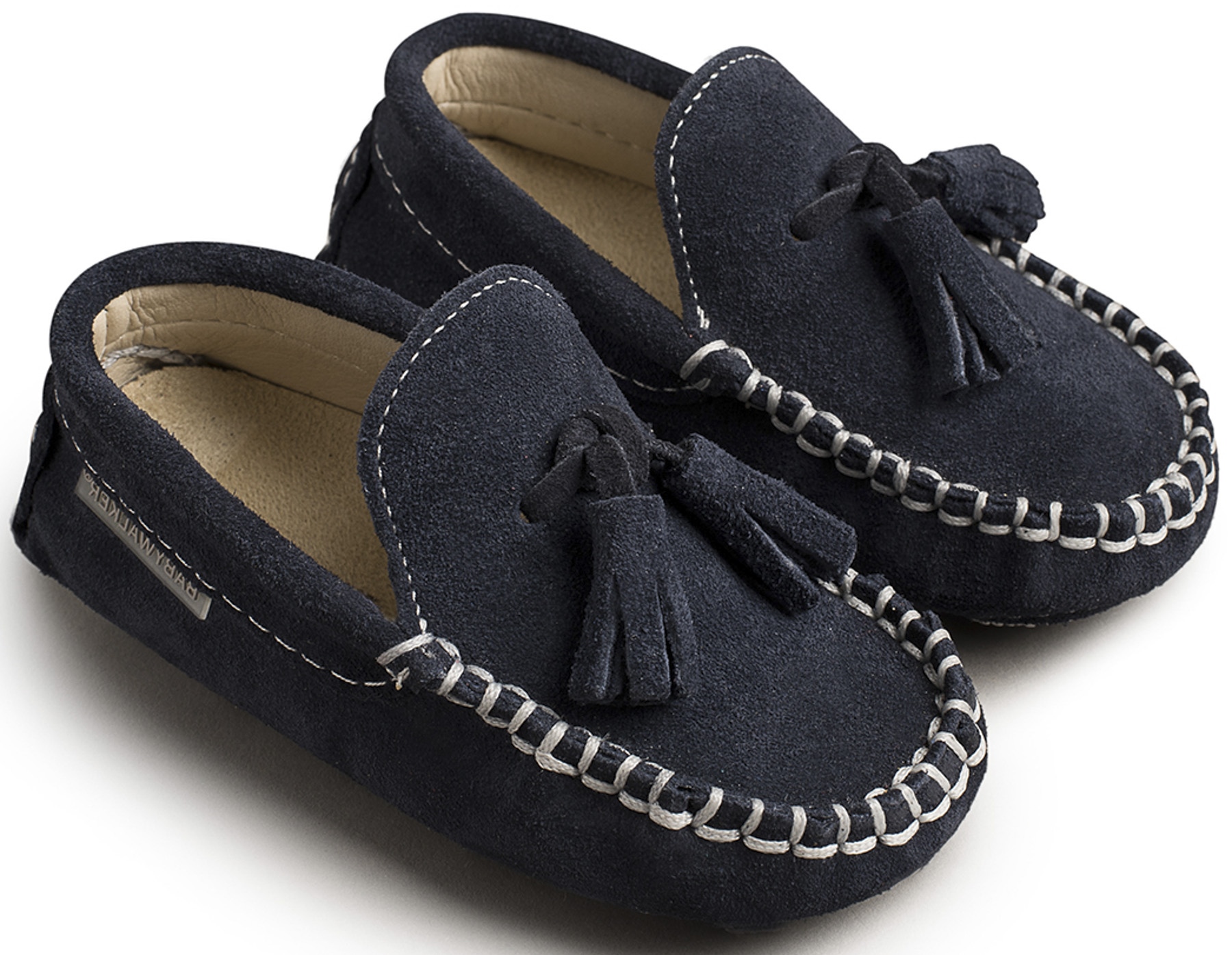 Καστόρινο Μοκασίνι με Φουντάκια από Δέρμα Κρούτα Suede σε Μπλε Χρώμα Νούμερα από 19 έως και 26.