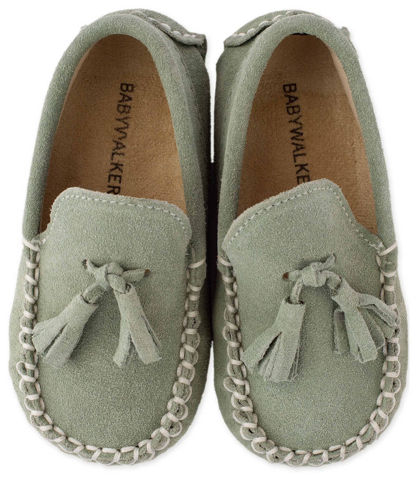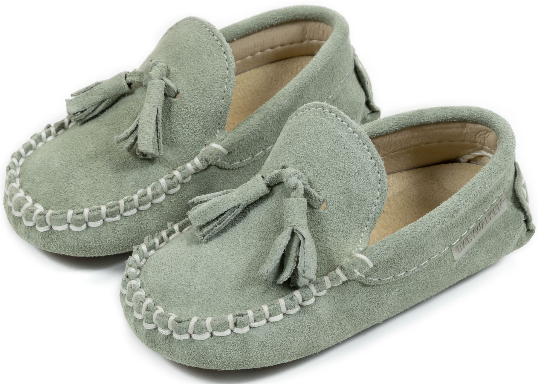 Καστόρινο Μοκασίνι με Φουντάκια από Δέρμα Κρούτα Suede σε Μέντα Χρώμα Νούμερα από 19 έως και 26.