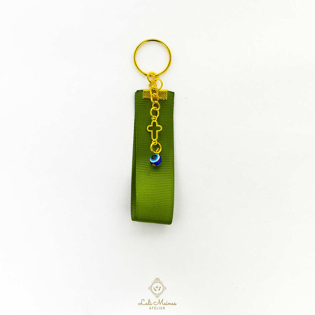 Μαρτυρικό Βάπτισης Μπρελόκ με Πράσινη Κορδέλα Κρο, Μάτι & Σταυρό