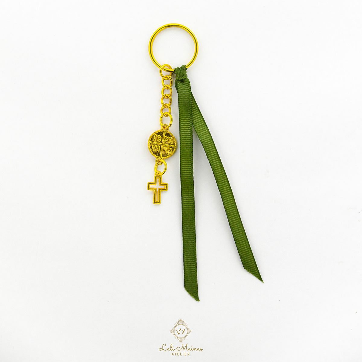 Κομψό και διαχρονικό μαρτυρικό μπρελόκ, ιδανικό για μια ξεχωριστή βάπτιση. Η αλυσίδα σε συνδυασμό με την πράσινη κορδέλα κρο προσδίδουν μοντέρνα και ιδιαίτερη αισθητική. Όλα τα μαρτυρικά μας διατίθενται σε σετ 50 τεμαχίων και συνοδεύονται από κουτί με την υπογραφή Lali Mainas Atelier. Κάθε δημιουργία είναι χειροποίητη με αγάπη.