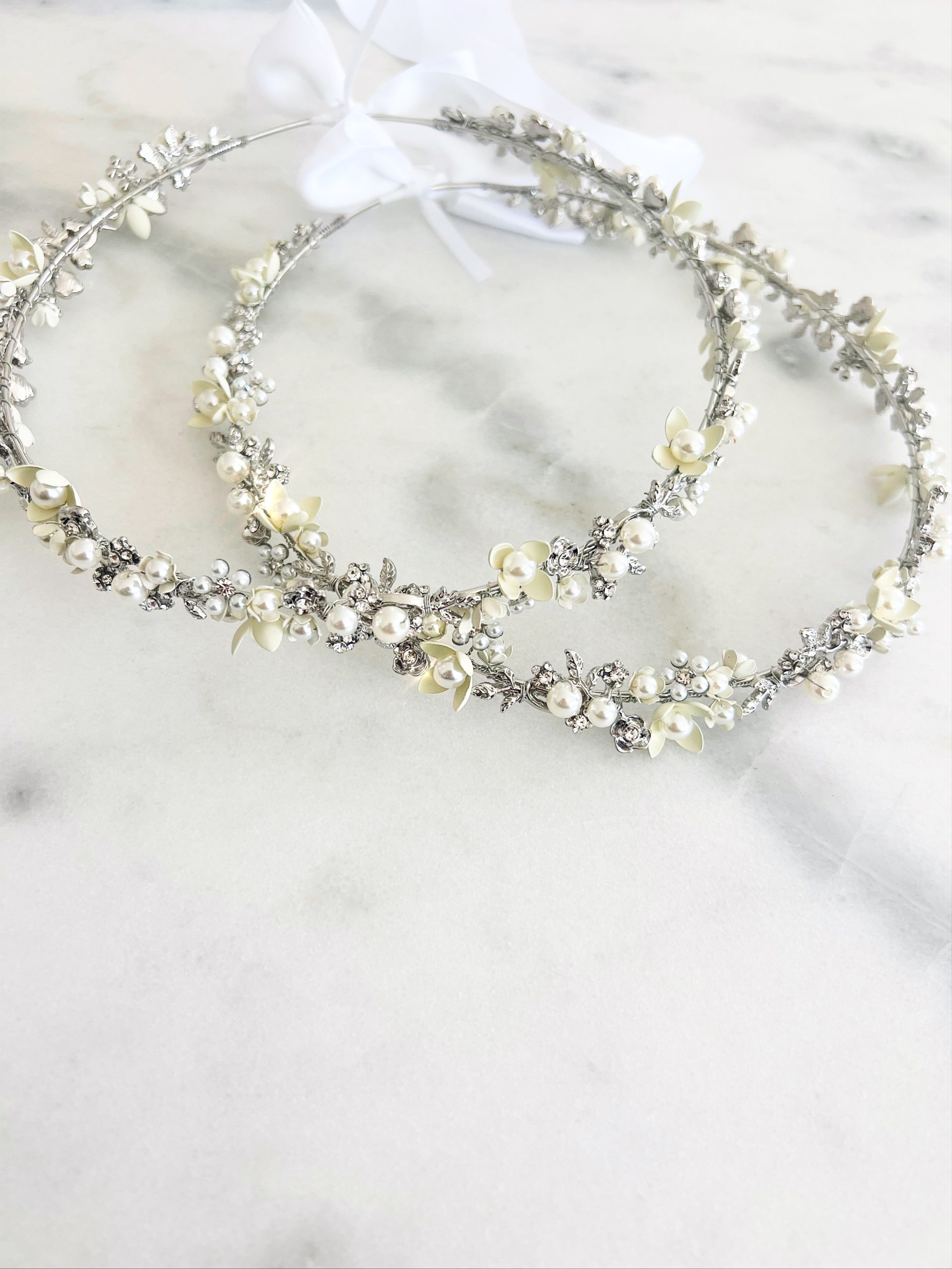 Χειροποίητα ασημένια στέφανα κατασκευασμένα με λαμπερά μαργαριτάρια, διαμάντια και ποιοτικούς κρυστάλλους.