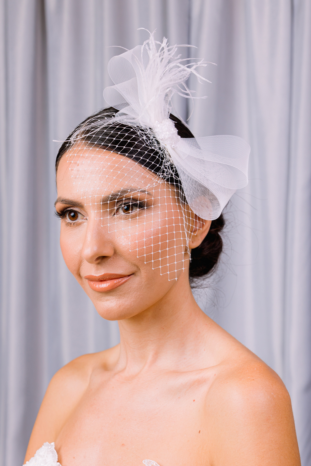 • Πλάγιο βέλο από φίνο δίχτυ που καλύπτει διακριτικά το πρόσωπο.