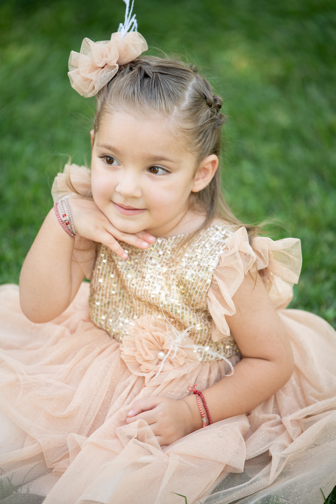 Παιδικό επίσημο φόρεμα με χρυσή παγιέτα και χρυσό γκλίτερ τούλι κάτω με διπλό βολάν.