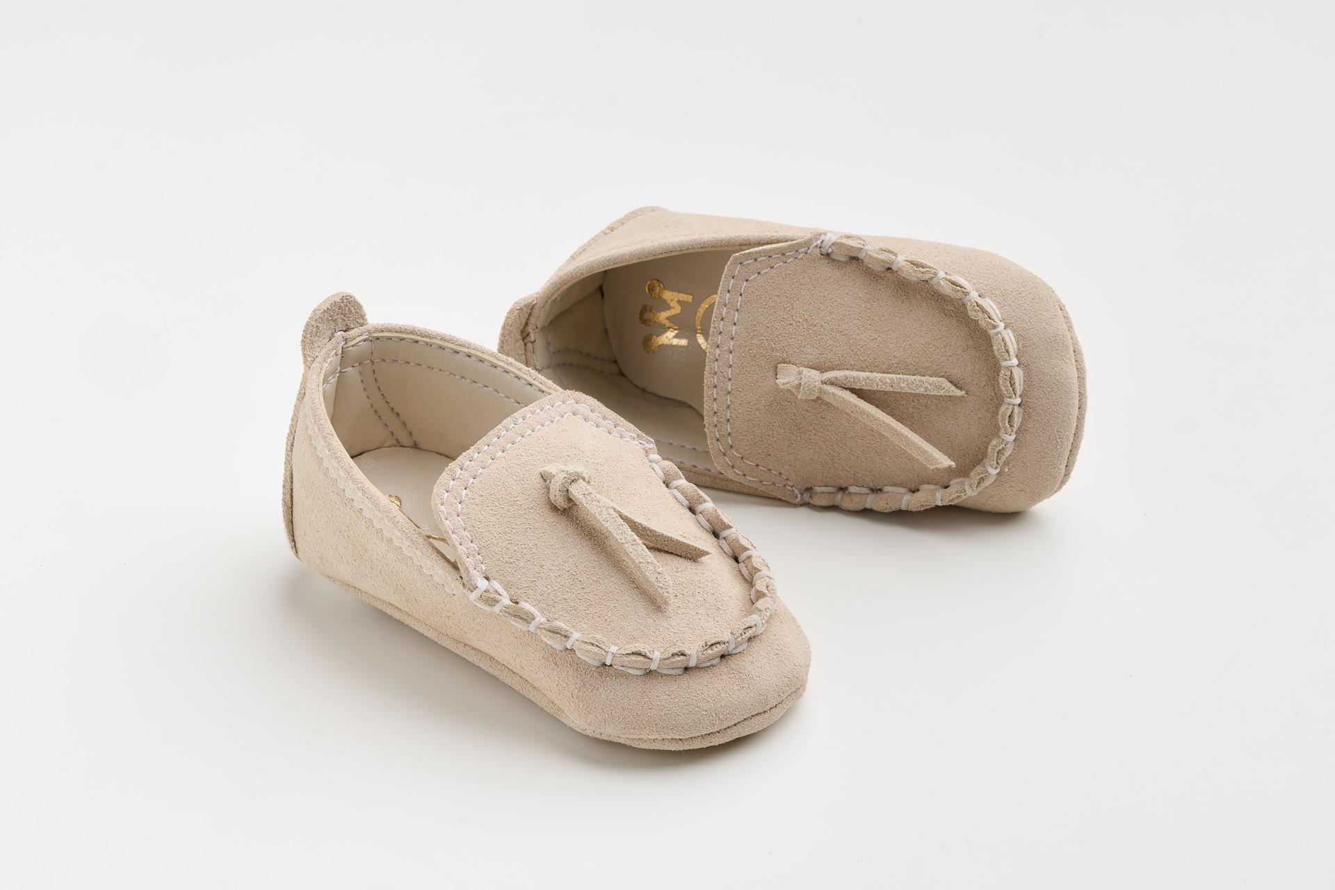 Παπουτσάκι αγκαλιάς σε μπεζ καστόρ δέρμα