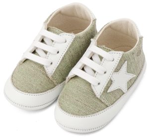 Παπουτσάκι αγκαλιάς sneaker σε μπεζ καστόρ δέρμα και λαδί ύφασμα