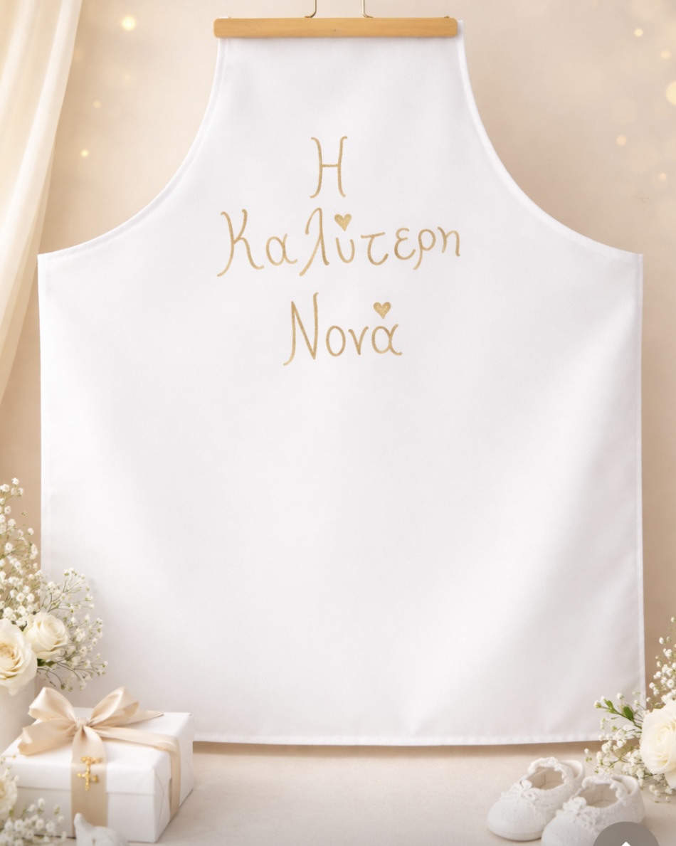 Αναδείξτε τη μοναδικότητα της στιγμής με μια κομψή και προσωποποιημένη ποδιά, σχεδιασμένη ειδικά για τον νονό ή τη νονά. Με προσεγμένο design και υψηλής ποιότητας εκτύπωση, αποτελεί ένα ξεχωριστό και συγκινητικό δώρο για τη βάπτιση.