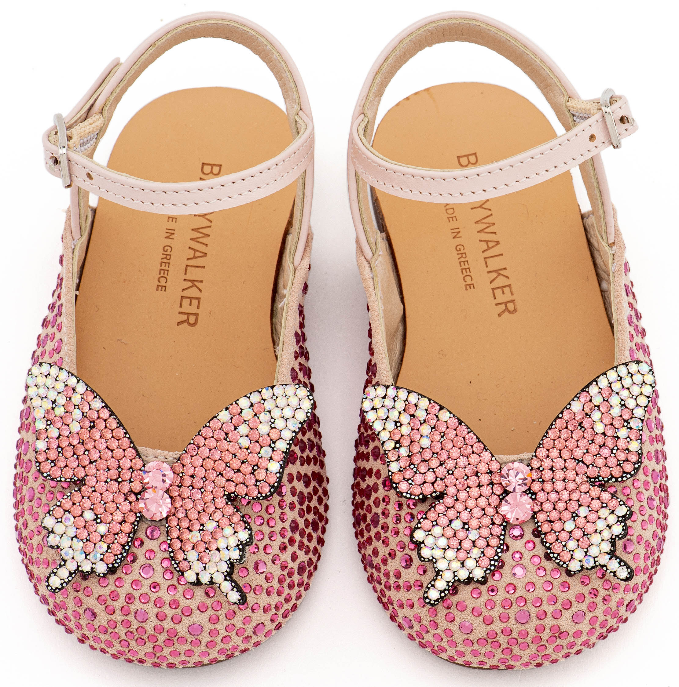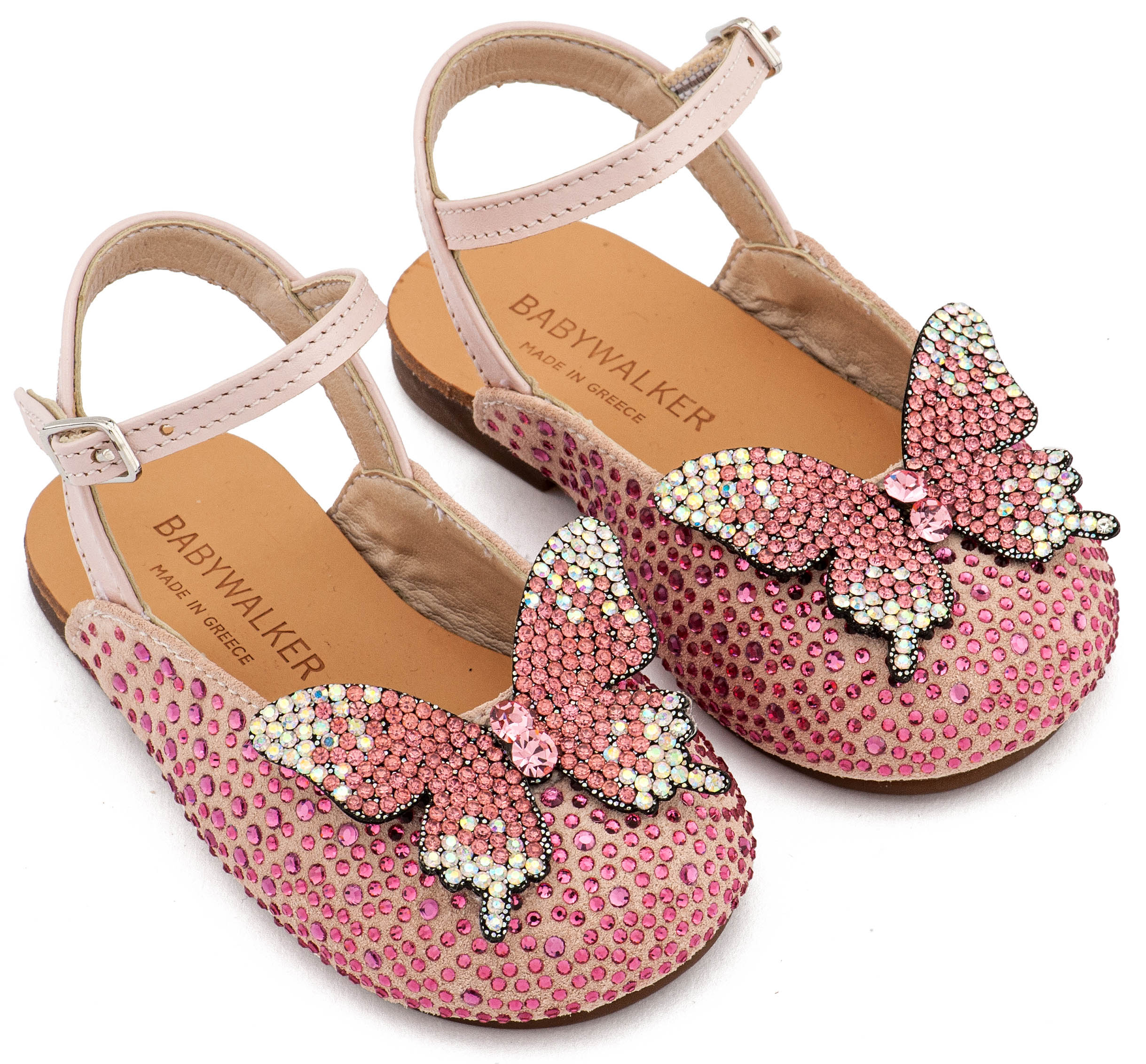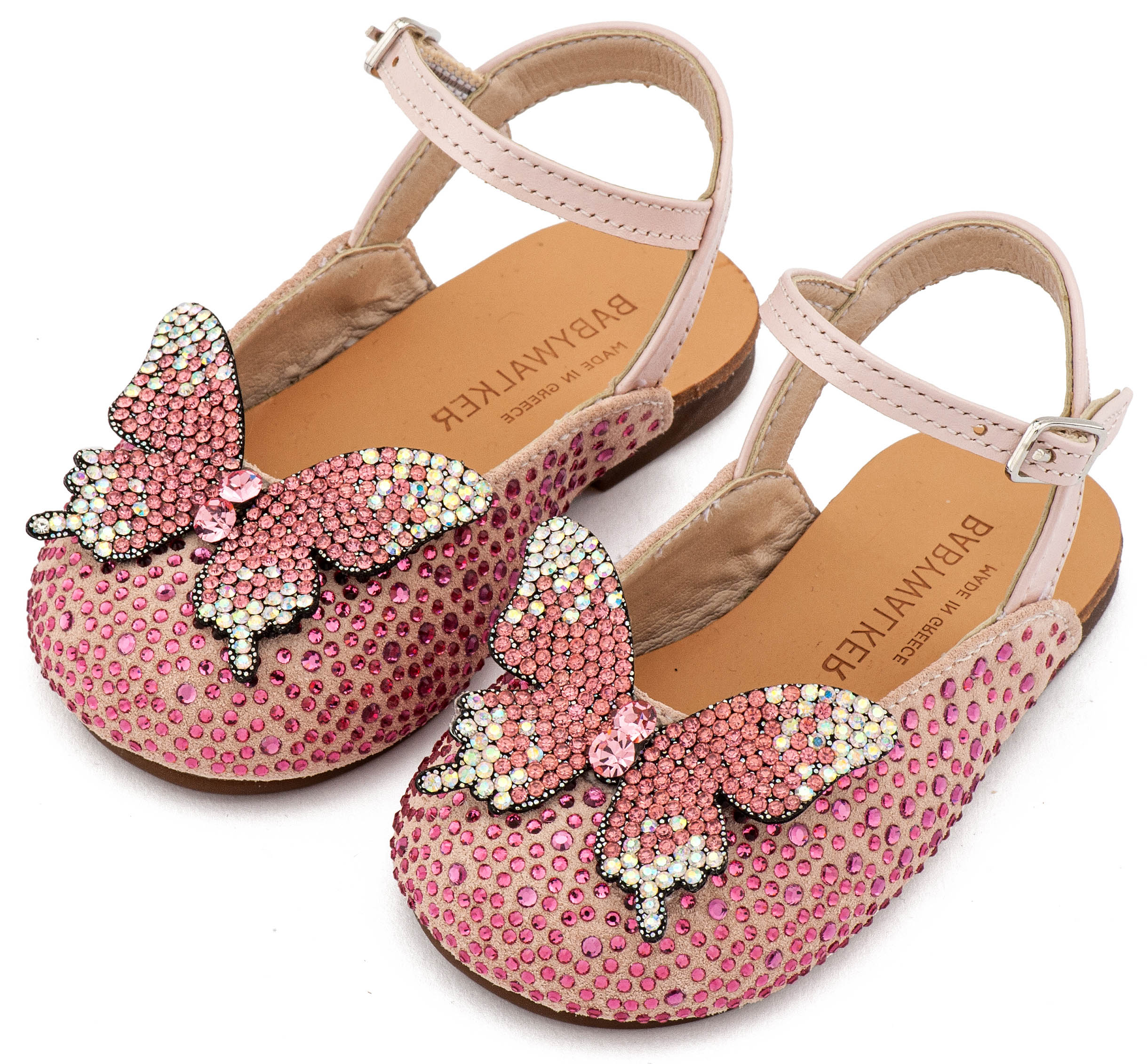 Δερμάτινο Σαμπό Διακοσμημένο Ολόγυρα με Στρας και Πεταλούδα σε Ροζ Χρώμα Νούμερα από 19 έως και 26.