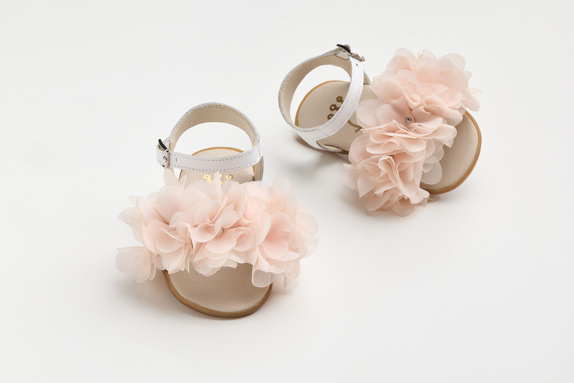 Σανδάλι για τα πρώτα βήματα σε λευκό δέρμα και χειροποίητο σομον διακοσμητικό