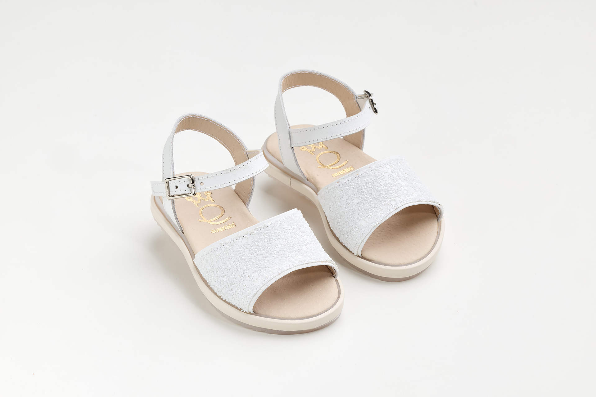 Σανδάλι περπατήματος σε λευκό δέρμα και λευκό ματ γκλιτερ.