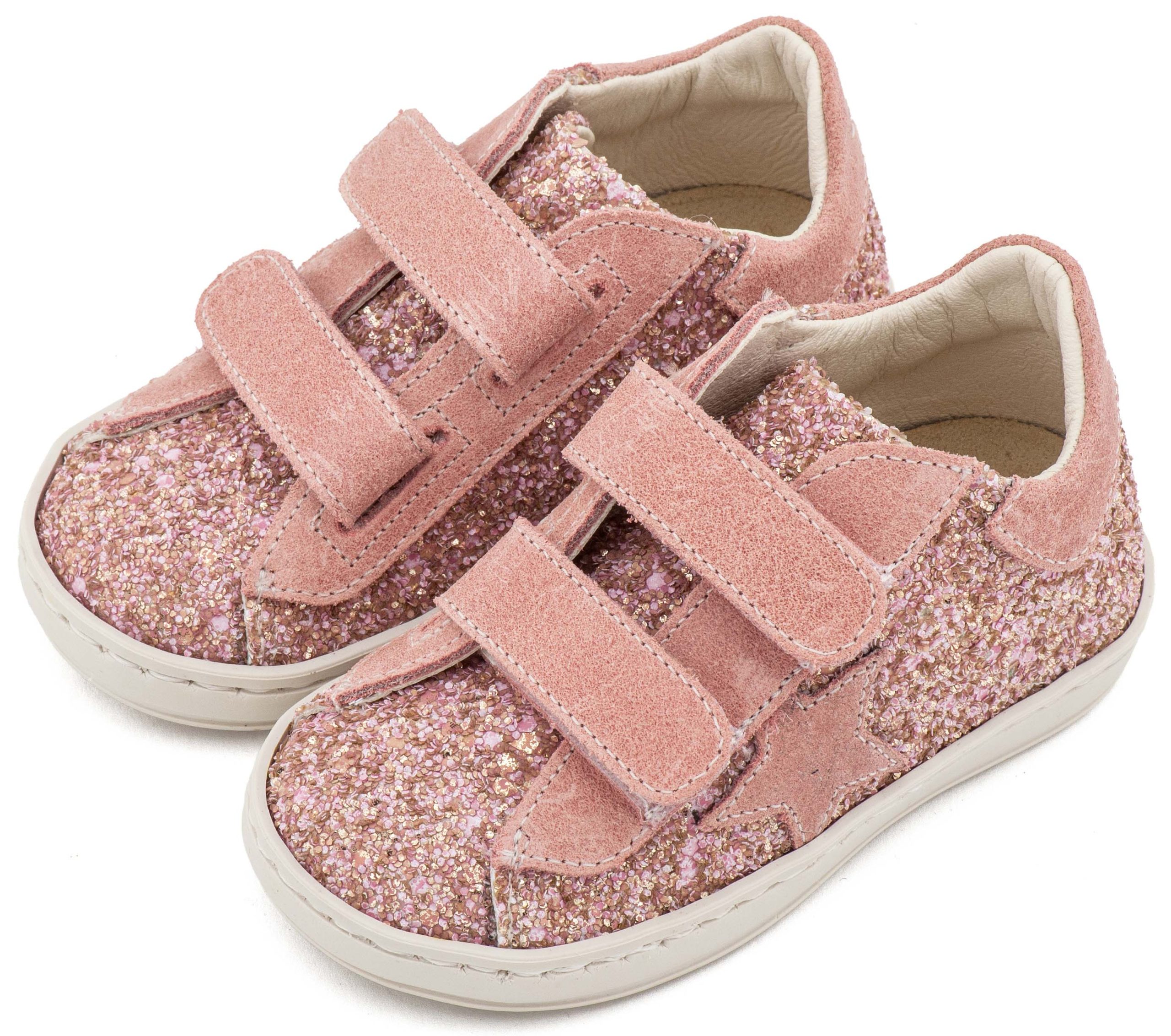 Sneaker Διπλό Χρατς απο Glitter και Δέρμα με Αστέρι στο Πλάι σε Ροζ Αντικέ Χρώμα Νούμερα από 19 έως και 26.