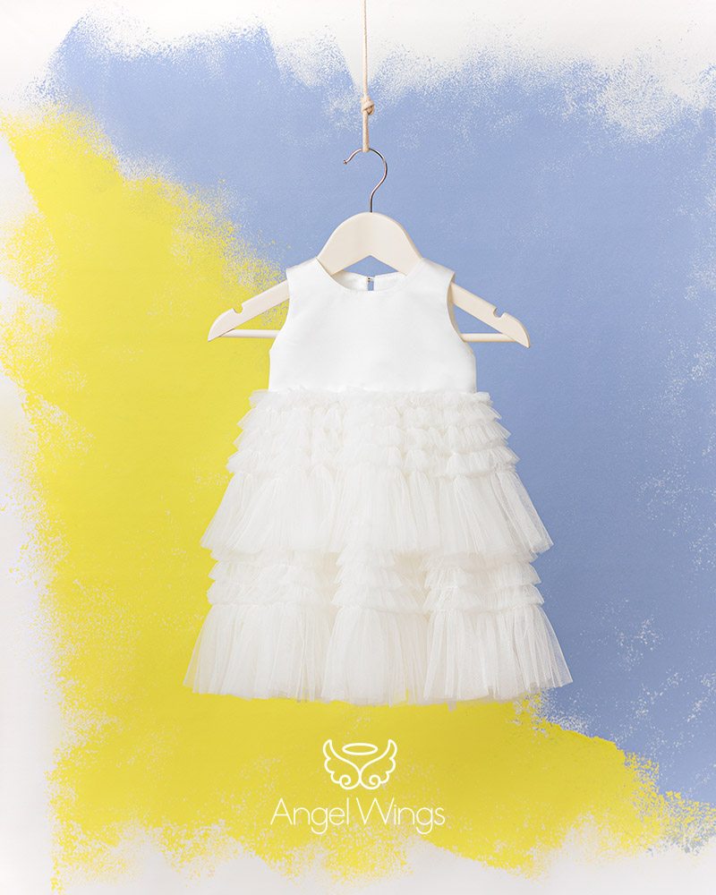 Βαπτιστικό Φόρεμα με Ασύμμετρη Φούστα και Ρομαντικές Λεπτομέρειες – Lali Mainas Atelier